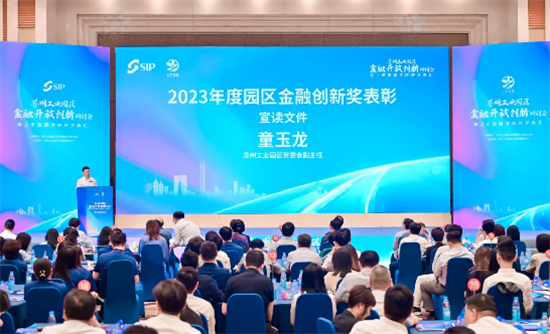 2023年,园区金融机构与科技企业携手并进,以科技创新为引擎、以市场需求为导向,在金融开放创新、服务科技企业、金融数字化转型、绿色金融等领域取得了令人瞩目的成绩。为了表彰这些杰出贡献者,专设“园区金融创新奖”。经过严格评选与认定,26家单位脱颖而出。苏州工业园区管委会副主任童玉龙宣读《关于2023年度金融创新机构评选结果的通报》文件。